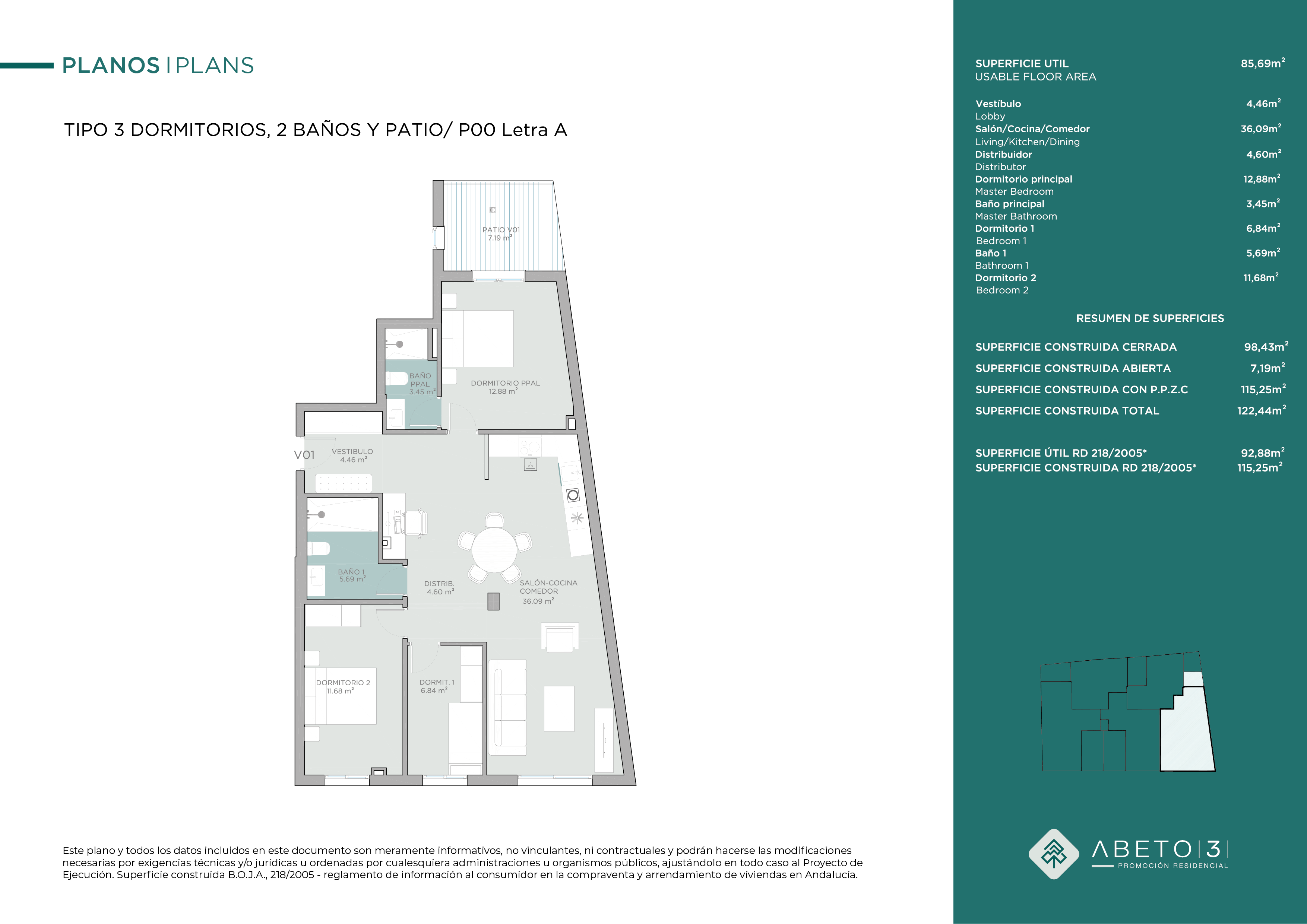 P00_LETRA_A | 3 DORM. | 2 BAÑOS | PATIO | 115,25 M2 | CONSULTAR | CONSULTAR | Ver | See | |||||