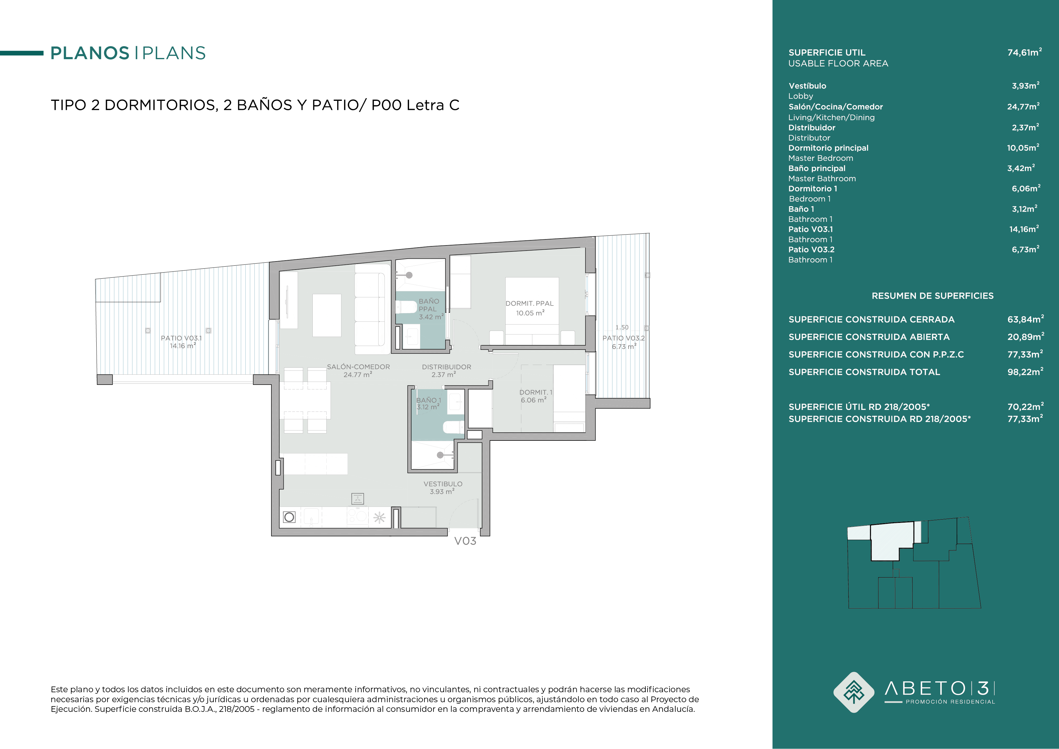 P00_LETRA_C | 2 DORM. | 2 BAÑOS | PATIO | 77,33 m2 | CONSULTAR | CONSULTAR | Ver | See | |||||