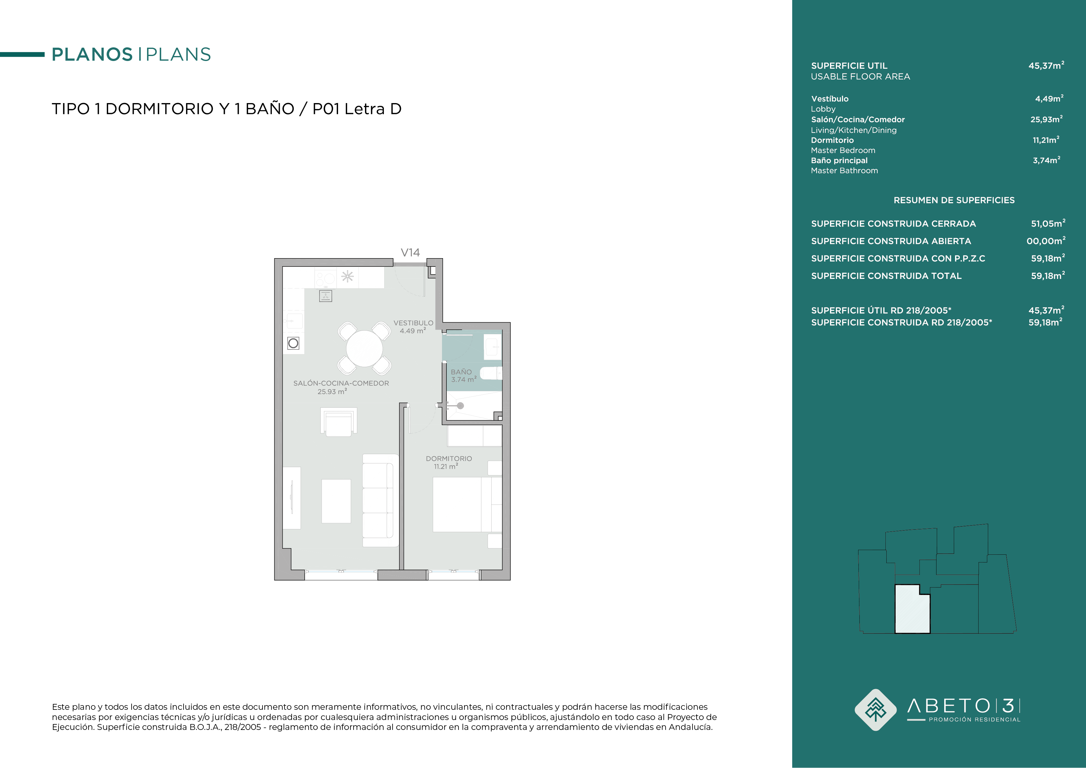 P01_LETRA_D | 1 DORM. | 1 BAÑO | 59,18 M2 | consultar | CONSULTAR | Ver | See | |||||