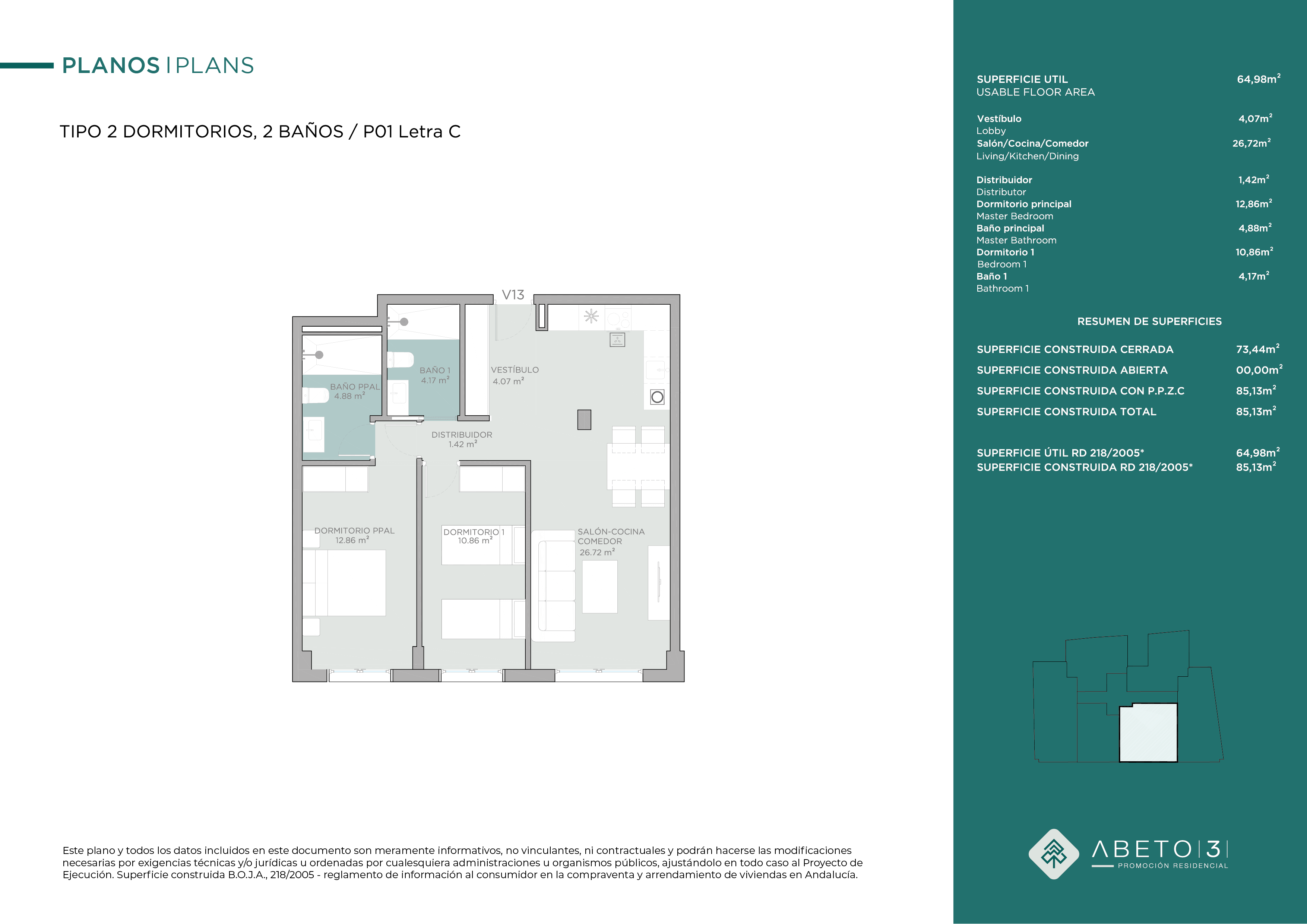 P01_LETRA_C | 2 DORM. | 2 BAÑOS | 85,13 m2 | CONSULTAR | CONSULTAR | Ver | See | |||||