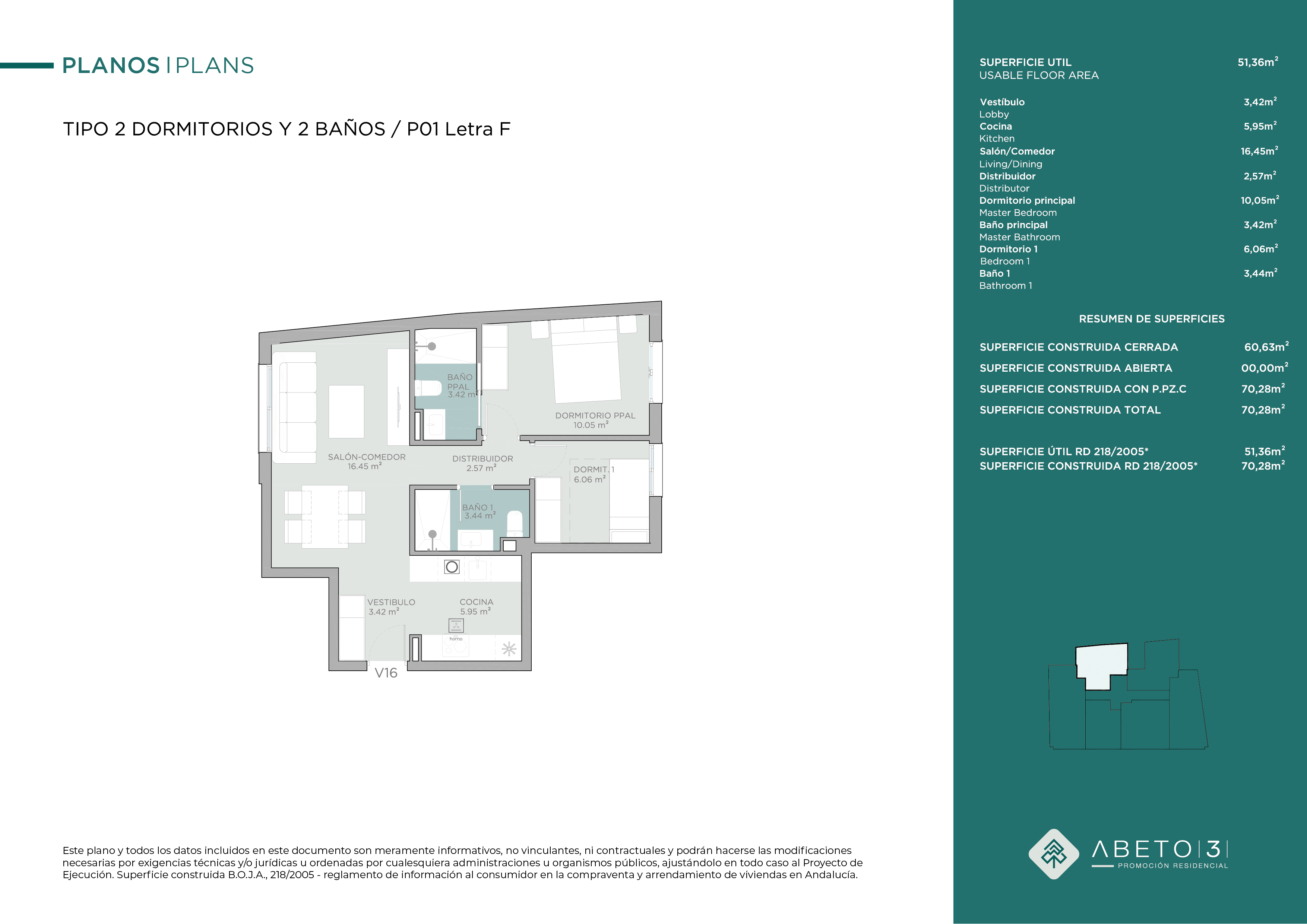 P01_LETRA_F | 2 DORM. | 2 BAÑOS | 70,28 M2 | CONSULTAR | CONSULTAR | Ver | See |