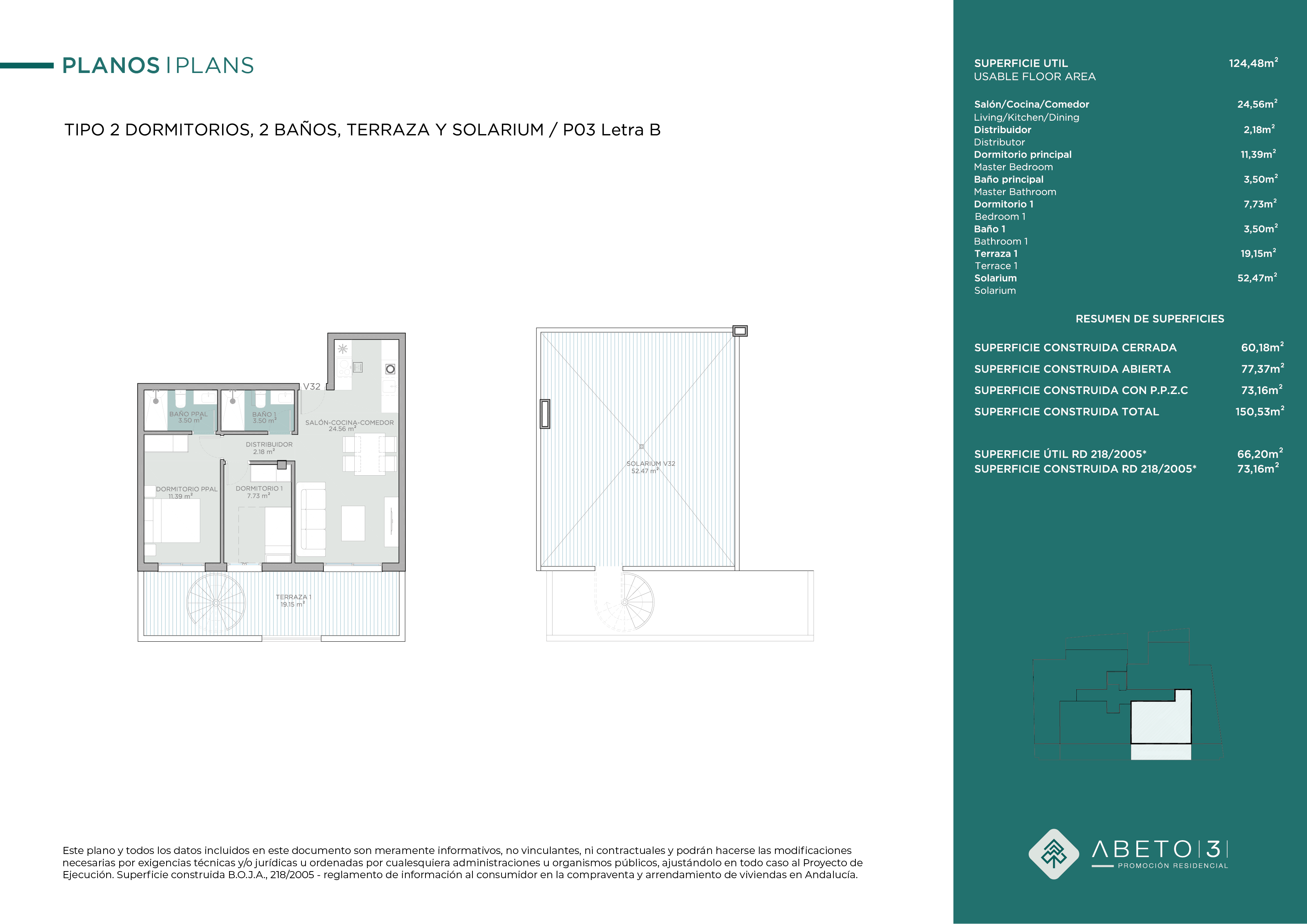 P03-LETRA_B | 2 DORM. | 2 BAÑOS | TERRAZA - SOLARIUM | 73,16 M2 | CONSULTAR | CONSULTAR | Ver | See | |||||