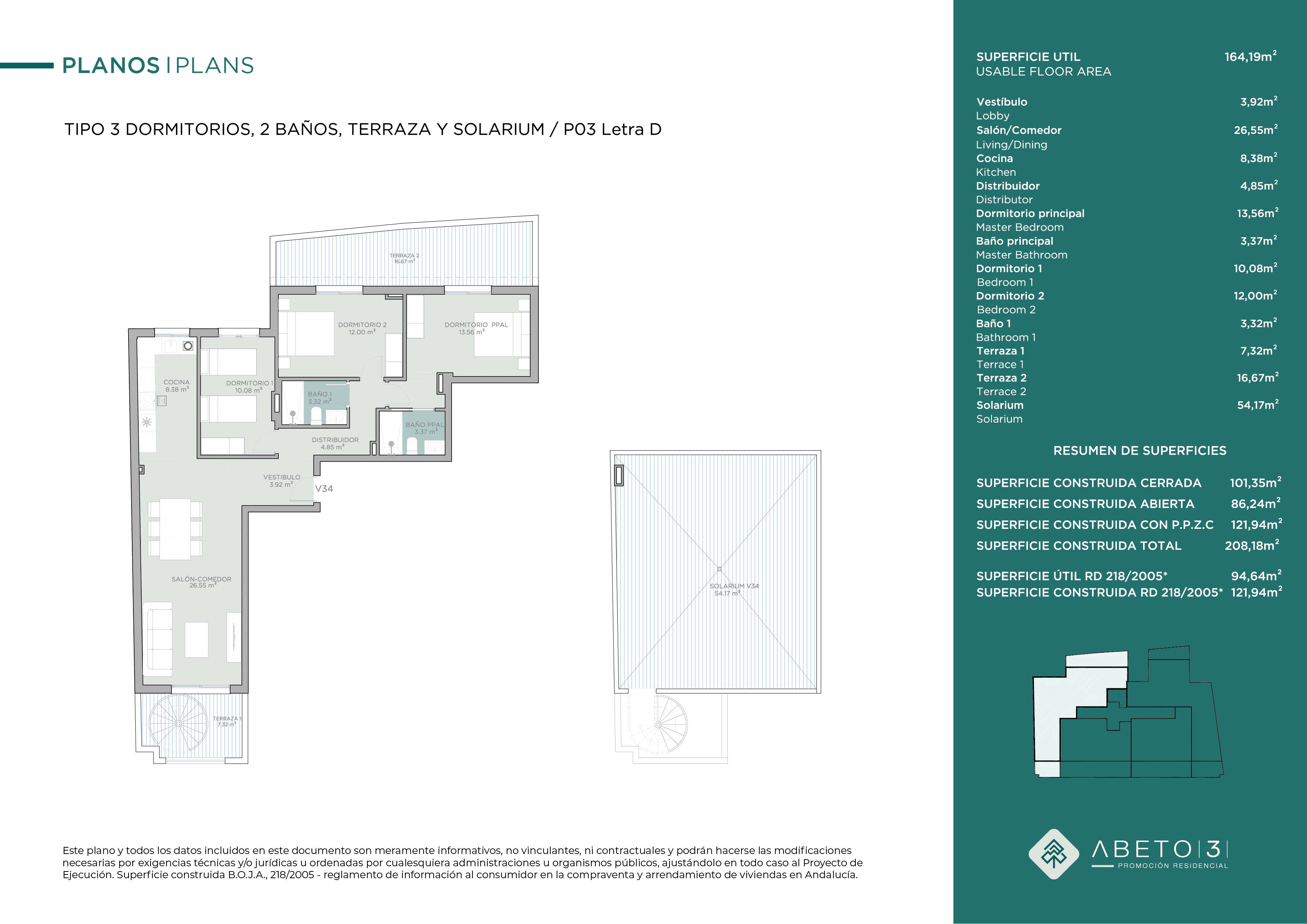 P03_LETRA_D | 3 DORM. | 2 BAÑOS | TERRAZA - SOLARIUM | 121,94 M2 | CONSULTAR | CONSULTAR | Ver | See |