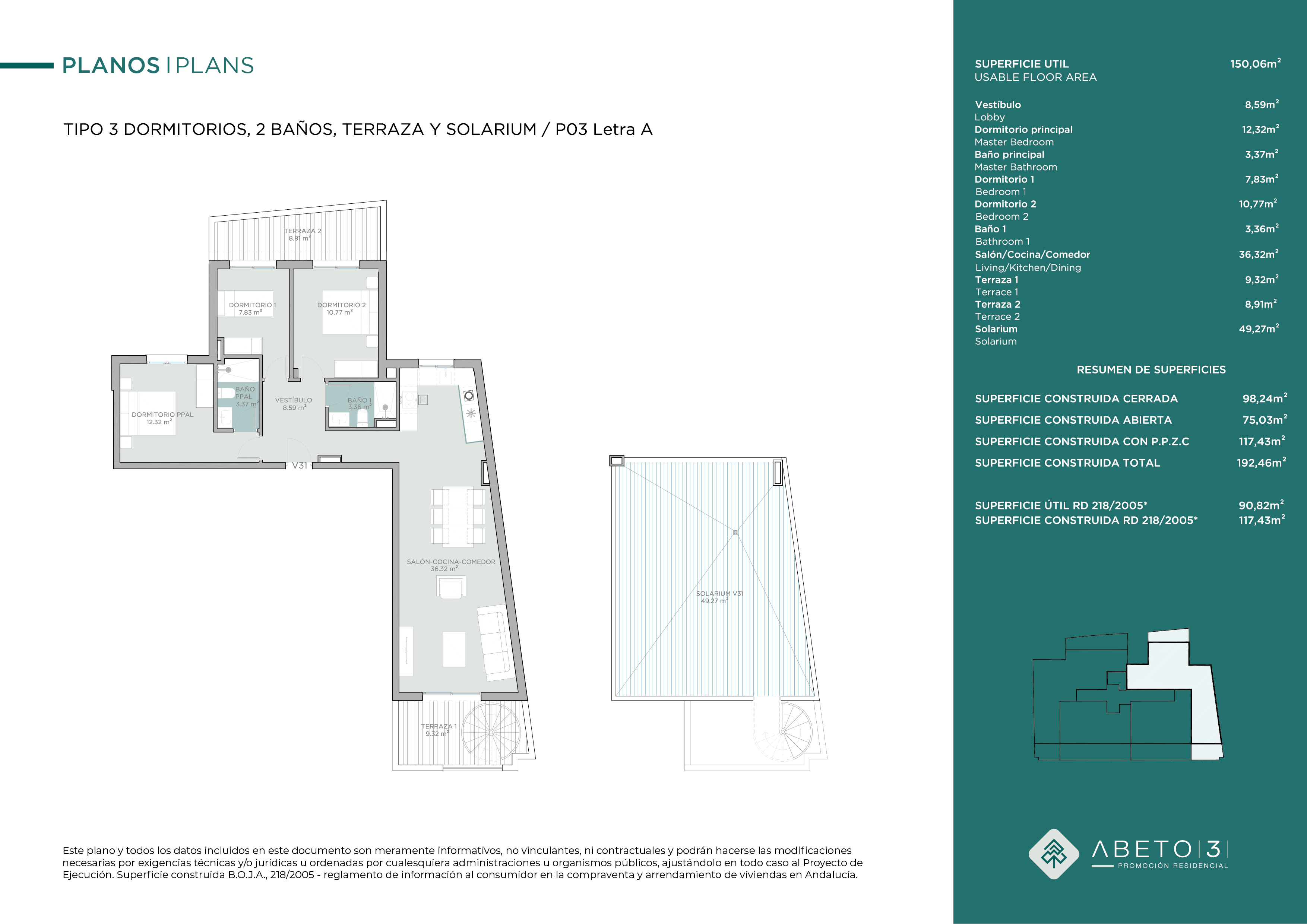 P03_LETRA_A | 3 DORM. | 2 BAÑOS | TERRAZA - SOLARIUM | 117,43 M2 | CONSULTAR | CONSULTAR | Ver | See | |||||